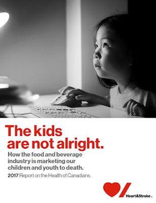 The Kids Are Not Alright - that's the blunt title of Canada's Heart and Stroke Foundation's (HSF) 2017 Report on the Health of Canadians, and it examines how Canada's food industry preys on our kids through marketing.