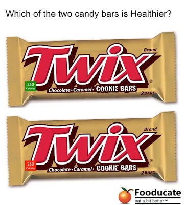 Great short post from my friend Hemi Weingarten the founder of Fooducate on front of package calorie labeling and chocolate bars.